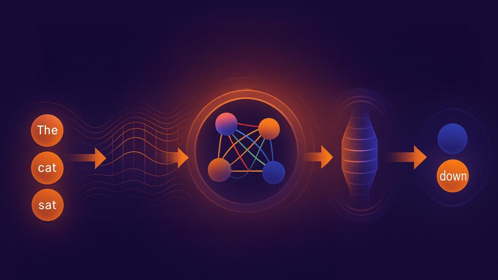 Kun kirjoitat kehotteen kielimallille, teksti ensin jaetadian pieniin osiin, tokeneihin, jotka voivat olla sanoja, niiden osia tai jopa yksittäisiä kirjaimia. Jokainen token muunnetaan numeeriseksi vektoriksi, joka kuvaa sen merkitystä moniulotteisessa merkitysavaruudessa. Tätä prosessia kutsutaan embedding-vaiheeksi (Brown ym. 2020). Malli käyttää huomiomekanismia selvittääkseen, mitkä osat tekstistä ovat yhteydessä toisiinsa, minkä jälkeen se ennustaa seuraavan todennäköisimmän tokenin annetun kontekstin perusteella. Prosessi toistuu, kun malli lisää yhden tokenin kerrallaan vastaukseen, kunnes se on valmis.